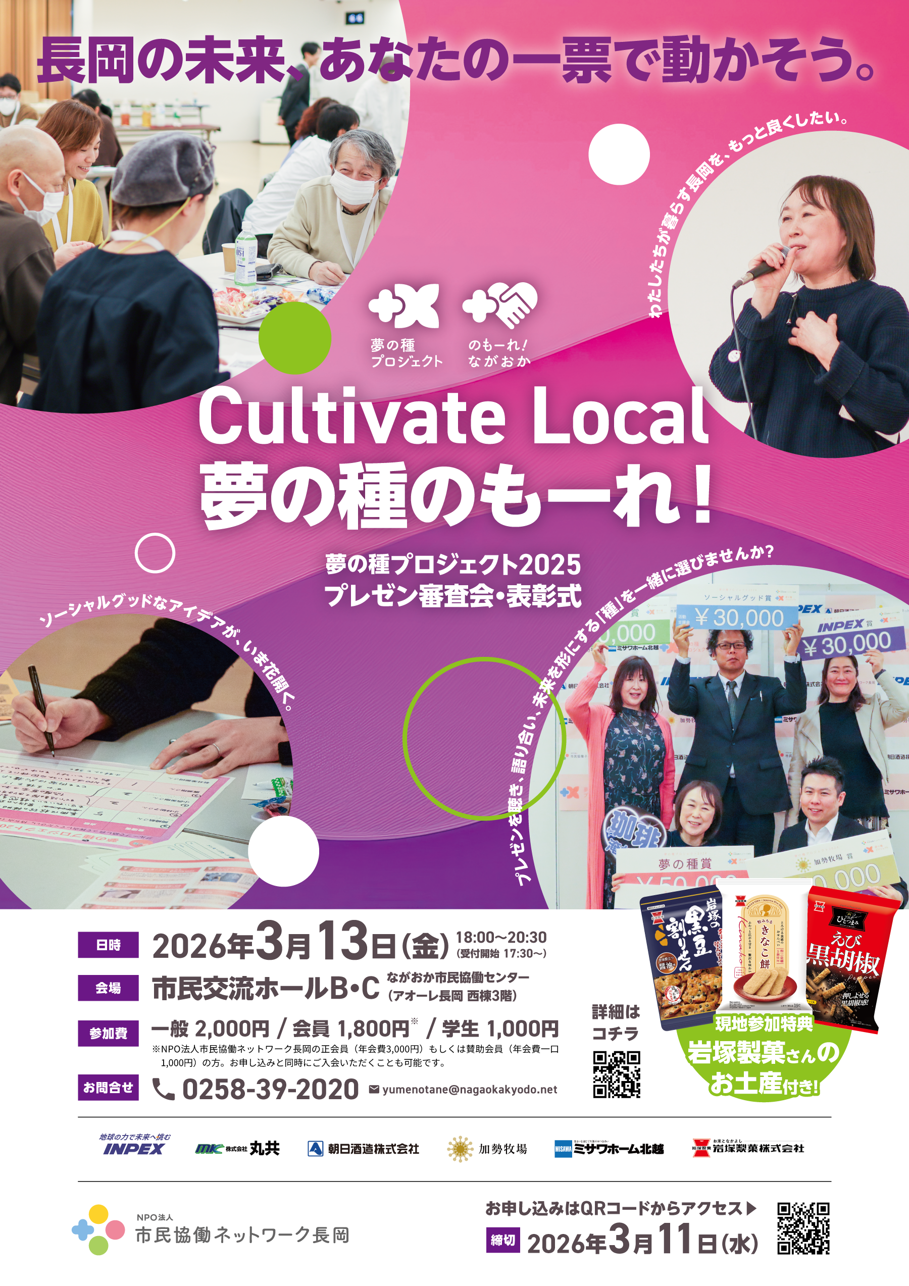 「夢の種のもーれ!2025」は、長岡をより良くするための斬新なプロジェクトを市民全員で選び、育てる、未来共創イベントです。