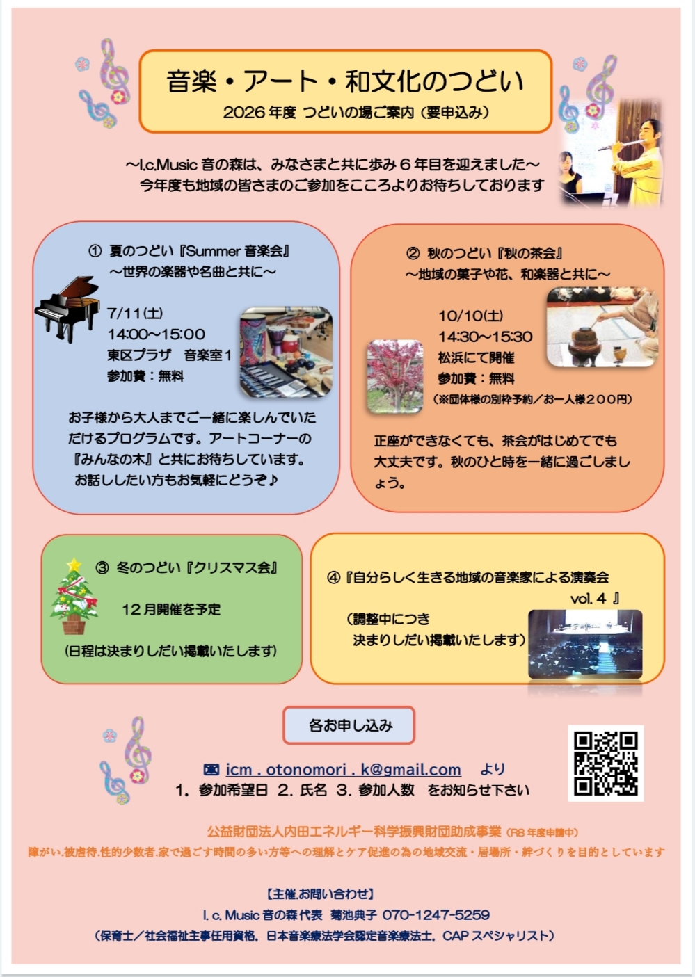 夏のつどい『Summer音楽会』 〜世界の楽器や名曲と共に〜