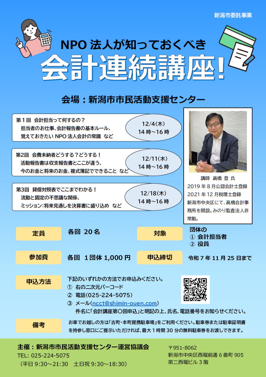 | 会場 | 新潟市市民活動支援センター(新潟市中央区西堀前通6) |